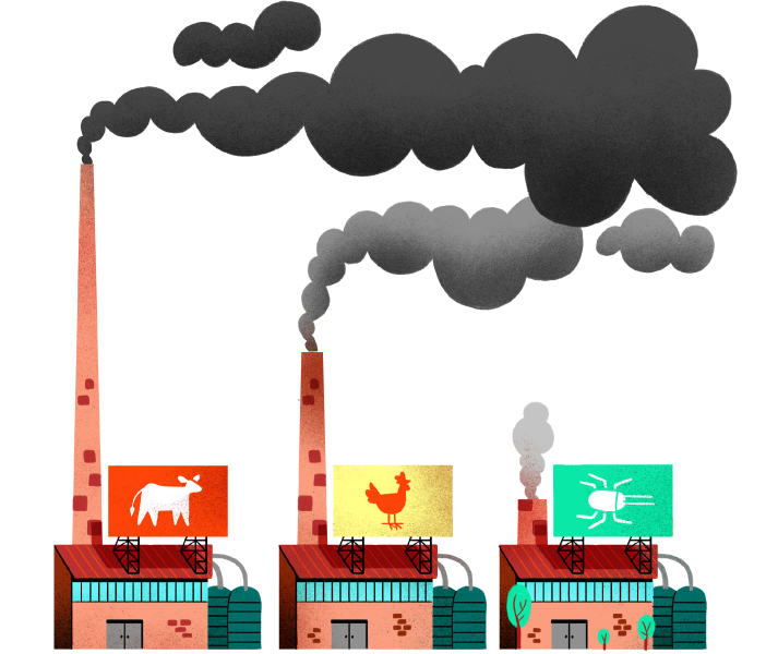 Global meat production contributes to as much as 25% of the world’s greenhouse gas emissions. Insect cultivation emits 100x less CO2 than livestock farming, and does not emit any nitrous oxide or methane. We’re also saving on CO2 emissions by sourcing ingredients and producing our pet food locally.