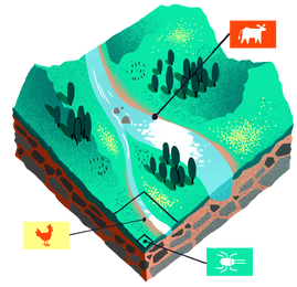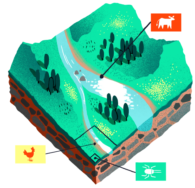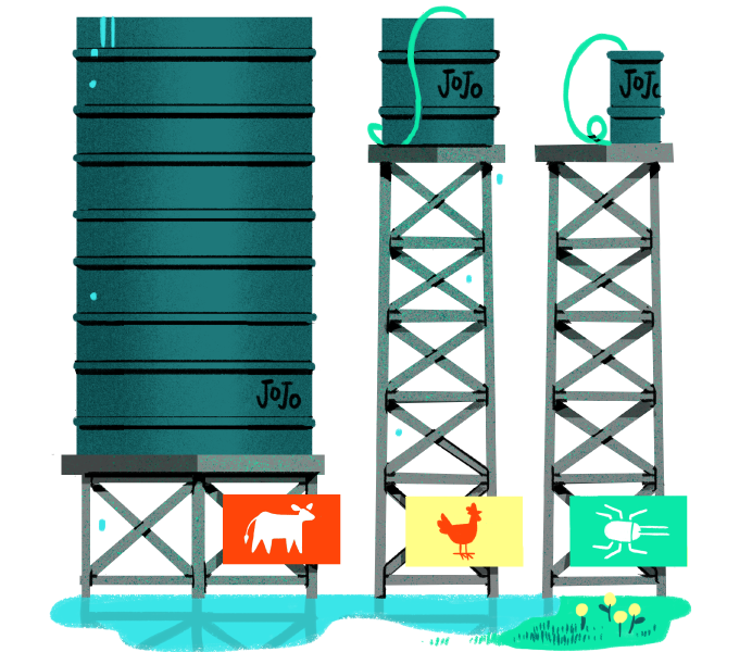 Did you know that about 26% of ice-free earth surface is used as grazing land for farm animals? Farming insects like the Black Soldier Fly Larvae used to make Aiko, uses 50x less land. Because they are teeny-tiny, these insects don’t need a lot of space. Where 80% of farmland is traditionally used to grow feed for farm animals, no extra land-mass is used to grow food for insects. Dogs that eat Aiko are treading much more lightly on the earth, and have a much lower impact on land-use.